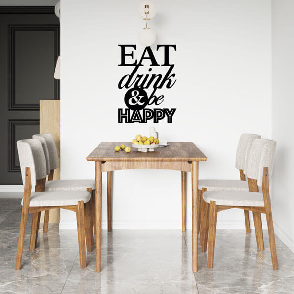 Voeg een vleugje vreugde en gezelligheid toe aan uw keuken met onze charmante muurdecoratie: "Eat, Drink & Be Happy". Dit prachtige stuk is vervaardigd van hoogwaardig 3 mm acryl, wat zorgt voor een eigentijdse uitstraling en langdurige duurzaamheid. De hartverwarmende tekst "Eat, Drink & Be Happy" brengt een gevoel van samenzijn en genot in uw culinaire ruimte, waardoor het de perfecte aanvulling is voor het creƫren van memorabele momenten met vrienden en familie. Of het nu gaat om het verfraaien van uw eigen keuken of om een attent geschenk voor een culinaire liefhebber, deze muurdecoratie zal zeker een glimlach op ieders gezicht toveren. Met zijn tijdloze ontwerp en hoogwaardige materialen is dit stuk niet alleen een decoratieve toevoeging, maar ook een uitnodiging om te genieten van de eenvoudige geneugten van het leven.